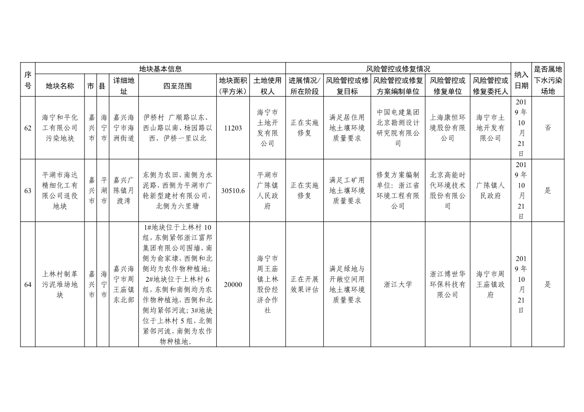 浙江省建设用地土壤污染风险管控和修复名录(含地下水污染场地)与浙江省建设用地土壤污染风险管控和修复名录移出清单已于2022年4月24日更新,详见附件。