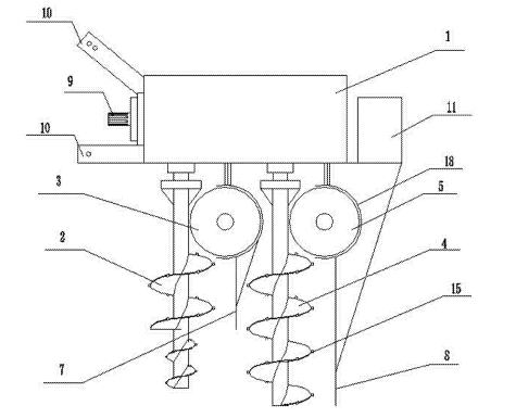 土壤修复装置,属于土壤修复设备技术领域,包括竖向提升机构及与其相连的横向输送机构,竖向提升机构、横向输送机构与动力机构传动连接。本发明的结构简单、整体设计合理、操作方便且土壤修复效果好。